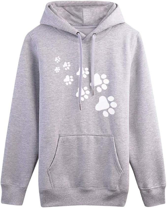 Amazon Cookinty パーカー レディース トレーナー フード付き トップス プルオーバー シャツ 足跡 肉球 長袖 ドローストリング 丸首 グレー 無地 おおきいサイズ ゆったり カジュアル 春秋冬 シンプル 運動風 韓国 裏起毛 おしゃれ スポーツ 可愛い トレーナー