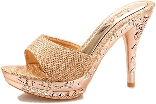 Amazon Yybo ミュール サンダルレディース 美脚 ピンヒール オープントゥ キラキラ 黒 ゴールド シルバー 靴 ストーム 厚底 11 5cmヒール ハイヒール 細いかかと スリッパサンダル 春 夏 女性 シューズ パーティー Yybo ミュール