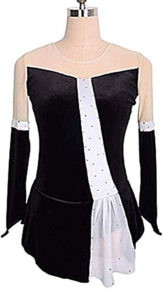 Amazon Co Jp フィギュアスケートドレス 女性の女の子の黒のスパンデックス伸縮性のある専門の競争のスケート の摩耗のスパンコールの長い袖のフィギュアスケート 服 ファッション小物