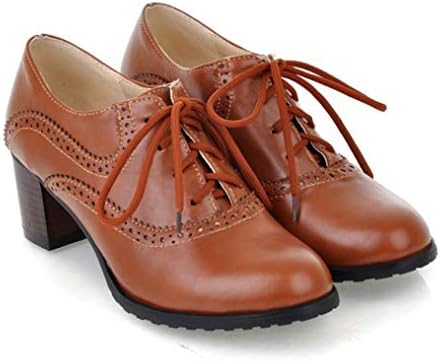 Chuguang 本革 レースアップシューズ レディース厚底 太ヒール ウイングチップ シークレット おじ靴 レディース 本革 大きいサイズ レースアップ Amazon