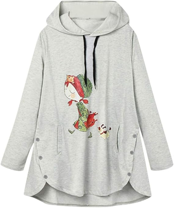 Amazon Budopy パーカー レディース スウェット トレーナー ゆったり プルオーバー トップス カジュアル 大きいサイズ 裏起毛 体型カバー 長袖 オーバーサイズ スポーツ コットン 通学 通勤 秋 冬 余暇 漫画 印刷する ボタン ポケット フード付き トレーナー