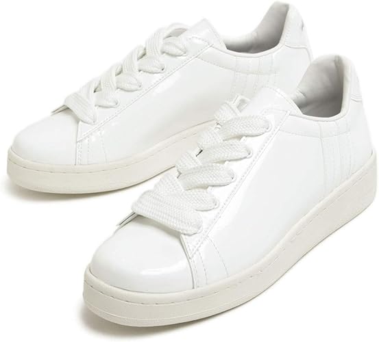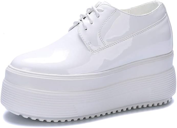 Amazon モリケイ 厚底靴 エナメル革 スニーカー レディース ホワイト ブラック 厚底 カジュアルシューズ 紐 厚底靴 エナメル革 スニーカー レディース ホワイト ブラック 厚底 カジュアルシューズ 春 モリケイ スニーカー