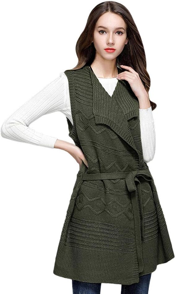 Amazon Hzjundasi レディース カーディガン ベルト付 フロントオープン ノースリーブ ニット コート セーター ケーブルニット アウトウエア ベスト ジャンパー カーディガン ボレロ 通販