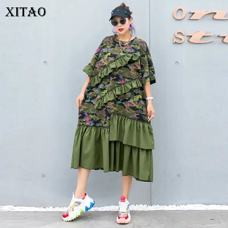 Xitao 潮パッチワークプリントフリルドレス女性服 夏のファッションプルオーバー半袖一致すべてのエレガントなドレス Gcc3696 Aliexpress