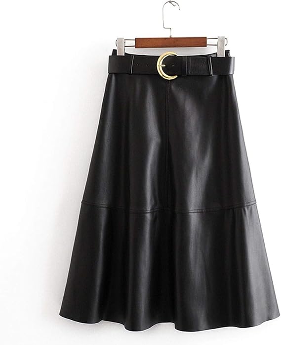 Amazon 秋冬puレザースカート女性ファッション緩いネクタイベルトウエストスカート女性エレガントミッドカーフスカート女性 スカート 通販