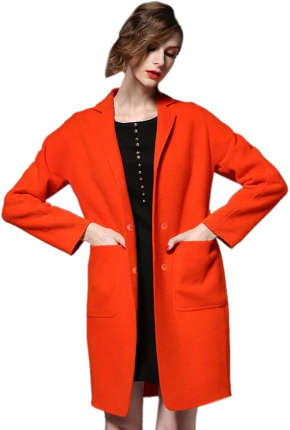 Amazon Co Jp ウールコート 秋と冬の新しいカラーマッチング両面コートウールコートレディースジャケットレディース コートレディース ウインドブレーカージャケット オレンジ色 L ホーム キッチン