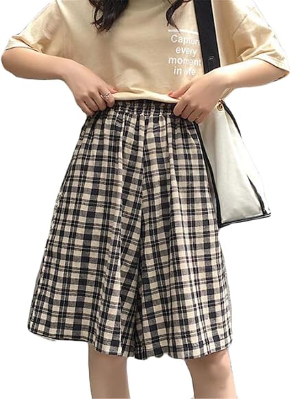 Amazon スーイ ショートパンツ レディース チェック柄 ワイドパンツ 短パン ゆったり ハーフパンツ ウェストゴム 着痩せ ボトムス 夏 ショーパン 可愛い ショートパンツ 通販